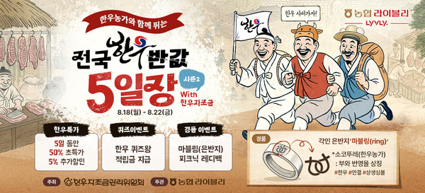 농협경제지주 축산경제가 운영하는 축산물 전문 온라인쇼핑몰 농협 라이블리가 한우자조금관리위원회와 함께 오는 22일까지 ‘전국 한우 반값 5일장’을 개최한다.