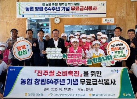 진주문산농협(조합장 조규석)은 지난 19일 진주시 문산읍 소재 홍락원에서 농협진주시지부(지부장 이태용), 고향주부모임 문산분회(회장 이현선)와 함께 농협 창립 64주년을 기념해 지역 어르신들을 위한 무료급식 봉사활동을 펼쳤다.