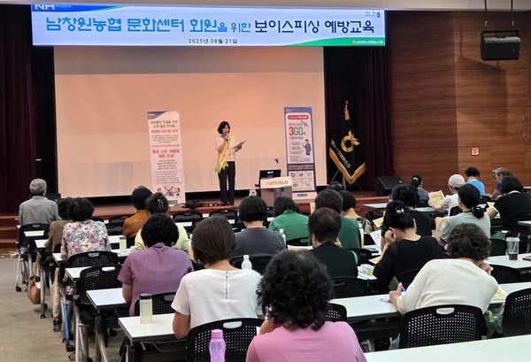 남창원농협(조합장 강호열)은 지난 21일 남창원농협 농수산물종합유통센터 대강당에서 남창원농협 문화센터 수강생 80명을 대상으로 보이스피싱 예방 교육을 열었다.
