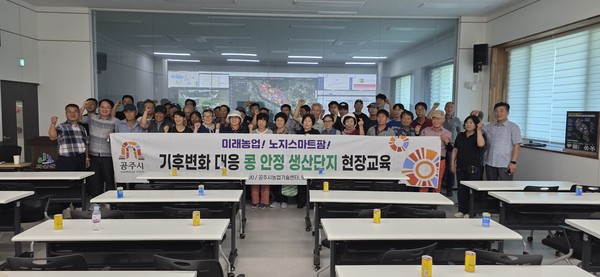 괴산스마트농업지원센터는 최근 공주시 농업기술센터의 콩작목반과 재배농업인 50명을 대상으로 충북 괴산스마트농업단지 현장교육을 실시했다.
