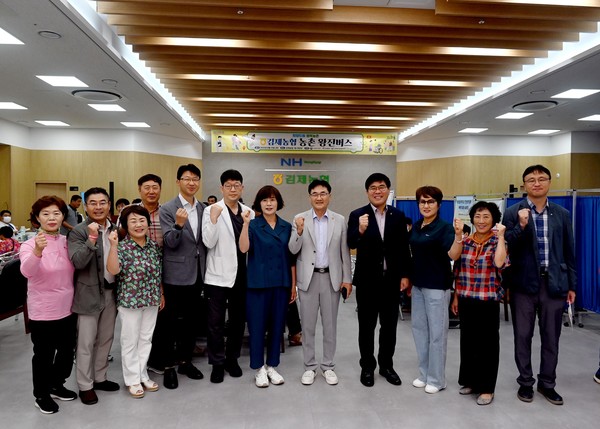 전북 김제농협(조합장 이정용)은 지난 14일 농협전북본부(총괄본부장 이정환)와 함께 본점에서 관내 죽산면·부량면 조합원 270여 명을 대상으로 찾아가는 의료서비스를 제공하는 ‘농촌 왕진버스’를 진행했다.