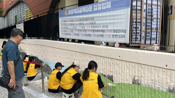 농림축산식품부와 농림수산식품교육문화정보원은 지난 23일 서울 마장동에서 대학생 벽화동아리와 협업해 ‘농업·농촌 가치확산 캠페인’(이하 갓생 캠페인) 벽화 작업<사진>을 실시했다.