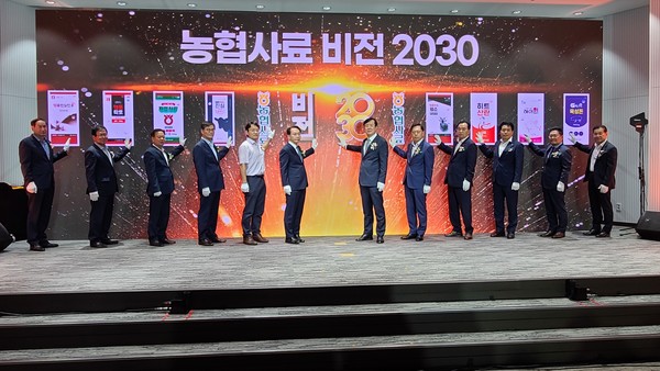 정종대 농협사료 대표이사는 인사말에서 “2030년까지 판매량 400만 톤 달성과 전체 시장점유율 20% 달성을 통해 대한민국 대표 사료 회사로서 위상을 공고히 하고 국내 축산업 발전을 선도함으로써 축산농가의 희망이 되는 드림파트너가 되겠다”며 “판매량과 시장점유율 확대를 위해 축종별 맞춤형 전략과 데이터 기반 스마트 영업을 활성화하고 공장 자율화와 업무 프로세스 개선을 통해 원가 절감과 경쟁력 강화를 추진하겠다”고 밝혔다.