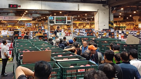 고당도 강릉사과의 서울 가락동농수산물도매시장 유통이 본격화된다.