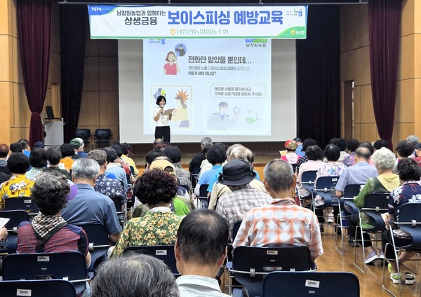 남창원농협(조합장 강호열)은 지난 2일 창원시 성산노인종합복지관 강당에서 노인 일자리 교육생 130명을 대상으로 보이스피싱 예방 교육을 열었다.