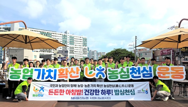이날 울산농협 직원들은 중구 약사천 일대에 버려진 생활쓰레기를 수거하고 잡초와 교란 식물을 제거하며 생태하천과 친수공간 조성에 힘을 보탰다. 또한 병영사거리와 동천체육관 일대에서 시민들에게 새로운 농업·농촌 국민운동인 ‘농심천심(農心天心) 운동’을 홍보하고 우리 쌀로 만든 즉석밥을 나눠주며 아침밥 먹기를 통해 건강한 식습관을 실천하자는 메시지를 전달했다.