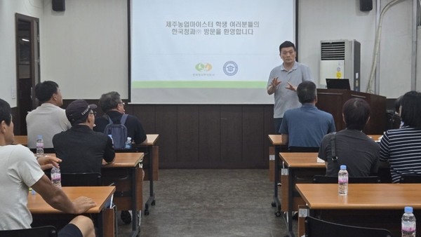 한국청과는 지난 4일 제주농업마이스터대학 감귤전공 교육생과 지도교수 등 23명을 서울 가락동 농수산물도매시장에 초청해 현장 견학과 교육을 진행했다고 밝혔다.