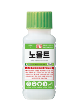 노몰트 액상수화제는 IGR계 곤충생장조정제 성분으로 작은뿌리파리의 탈피를 방해함으로써 밀도를 줄인다. 약효가 오래 지속되고 내우성을 지녀 강우에도 씻겨 내려갈 염려가 적다. 작은뿌리파리뿐만 아니라 나방류에도 약효가 우수하다.