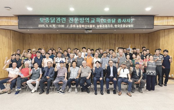 (사)한국토종닭협회가 겨울철 가축전염병 특별방역대책 기간을 앞두고 토종닭 농장과 전통시장에서의 조류인플루엔자(AI) 발생 제로화를 위한 ‘토종닭 종사자 전문 방역 교육’을 마무리했다.