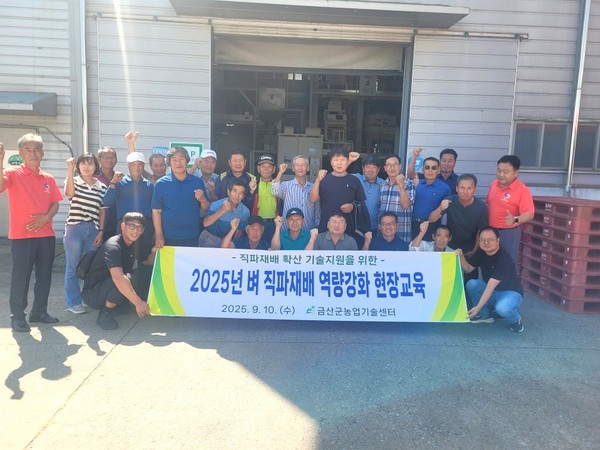 금산군은 지난 10일 지역 내 벼 재배 농가를 대상으로 군북면 일원에서 벼 신품종 평가회를 열고 서산시 일원에서 직파재배 현장 교육을 시행했다.