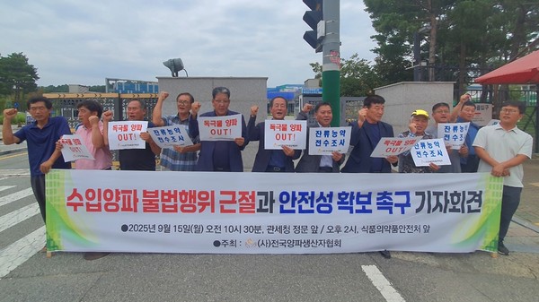 전국양파생산자협회(회장 남종우)는 지난 15일 관세청과 식품의약품안전처를 방문해 ‘수입양파 불법행위 근절과 안전성 확보 촉구 기자회견’을 열었다.