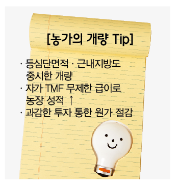 그는 이어 “기본적인 개량을 통해 우군 성적을 평균화했고 이러한 노력 이후에 좋은 품질의 사료를 먹이니 등심단면적, 도체중, 근내지방 등의 성적이 크게 향상했다”고 밝혔다.