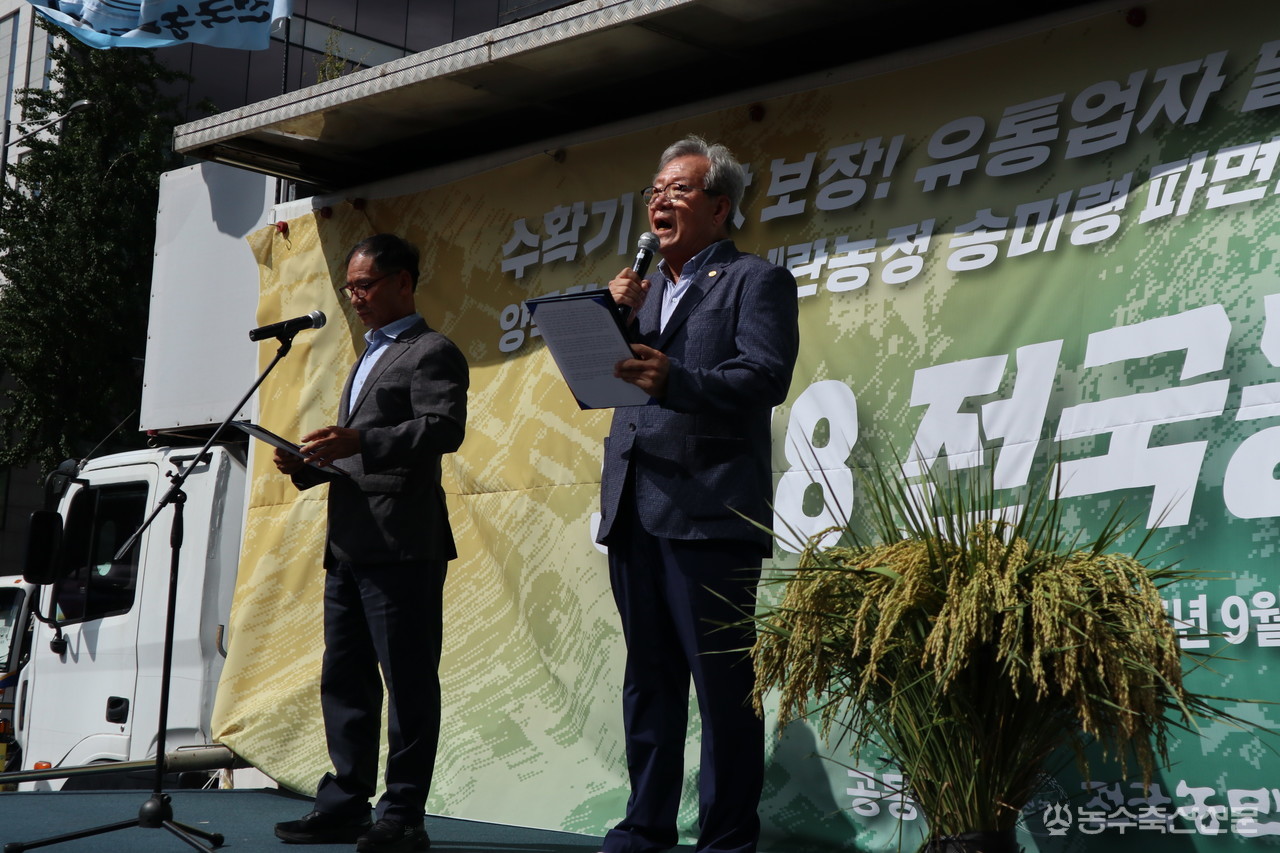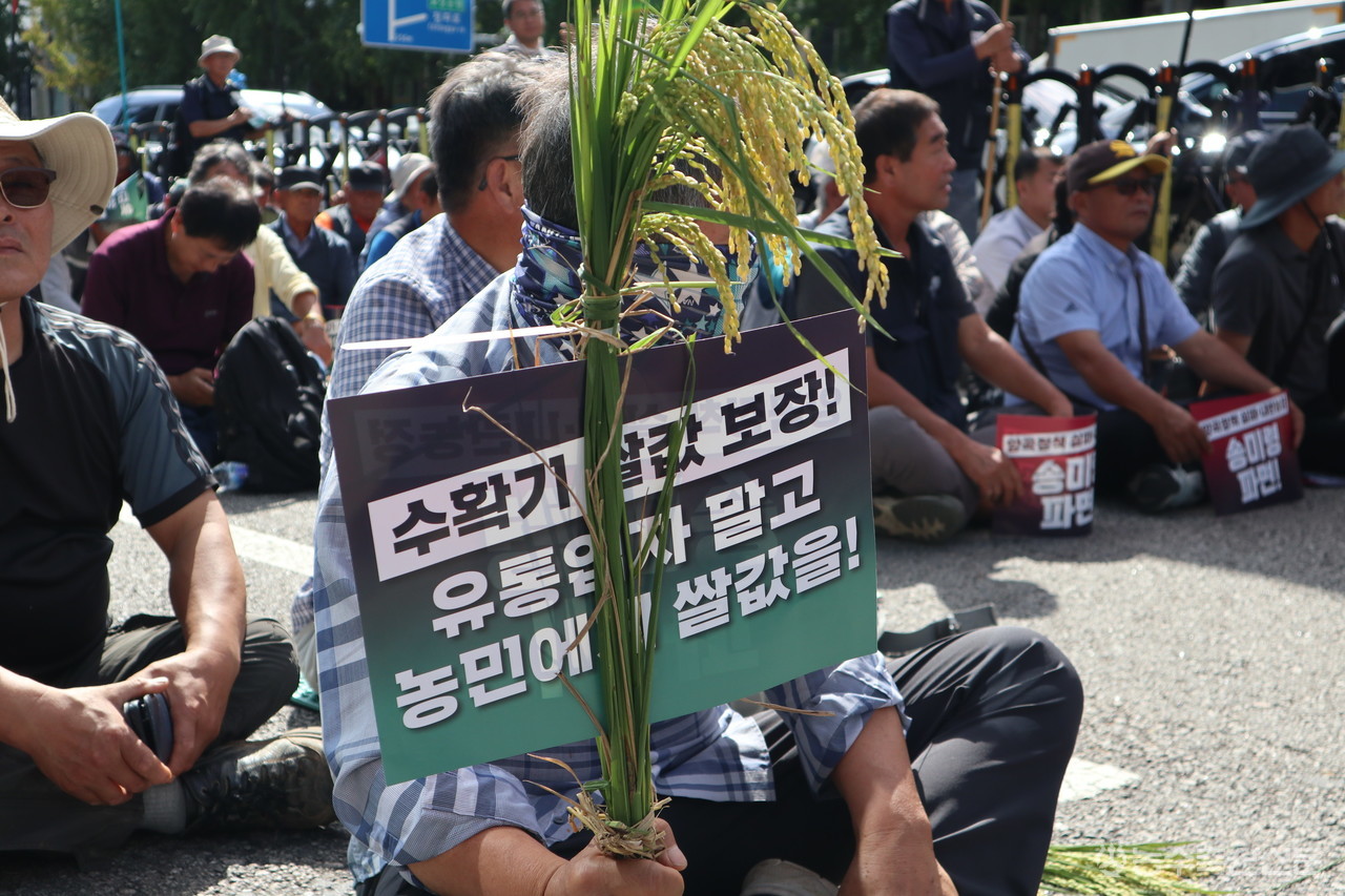김명기 전국쌀생산자협회장은 “소비자물가지수를 보면 지난달 전체 물가가 16.45% 오르는 동안 쌀값은 9.69% 올랐다”며 “그런데도 정부는 물가 폭등의 책임을 쌀값에 돌리며, 쌀값이 조금 회복되자마자 세 차례 비축미를 방출했고 할인 행사를 남발하며 쌀값 하락을 부추기고 있다”고 말했다.