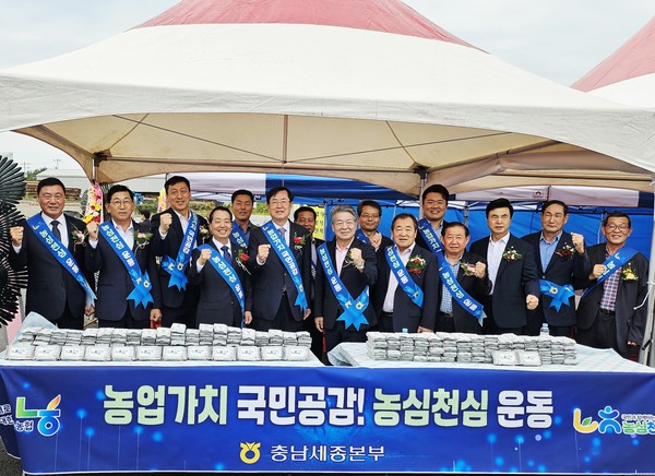 농협충남세종본부(본부장 정해웅)는 지난 19일 논산계룡축협 한마음 축제와 스마트가축시장 준공식에서 가축 질병 예방과 함께하는 농심천심(農心天心)운동 캠페인을 펼쳤다.