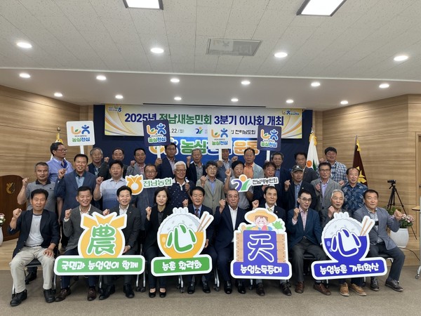 농협전남본부(본부장 이광일)와 전남새농민회(회장 김성열)는 지난 22일 도임원과 시·군회장 30여 명이 참석한 가운데 장흥축협 경제사업소 회의실에서 전남새농민회 3분기 이사회를 개최하고 농협의 새로운 농업·농촌 국민운동인 ‘농심천심운동’에 적극적인 동참을 다짐했다.