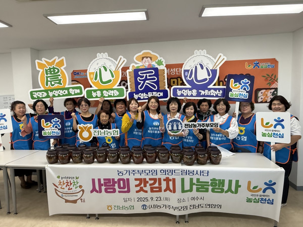 농협전남본부(본부장 이광일)와 농가주부모임 전남도연합회(회장 정혜숙) 회원 20여 명은 지난 23일 여수에서 갓김치 만들기 체험을 하고 직접 담근 50상자를 고령농 등 취약계층에게 전달했다.