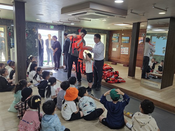 이날 소안초등학교병설유치원 원생들은 소안농협에서 운영하는 여객선에 승선해 선장실 체험, 구명조끼 착용법 교육과 여객선 승선 요령 등 해상안전교육 후 화흥포항에서 농심천심 운동을 실시했다.