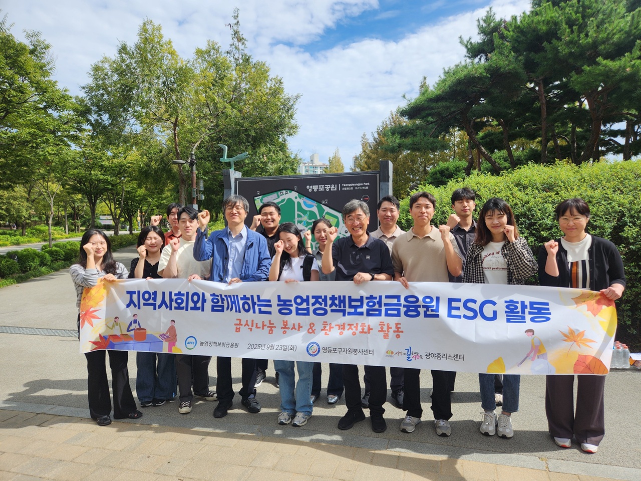 농업정책보험금융원(이하 농금원)이 민족 대명절 추석을 맞아 급식 나눔 봉사와 환경정화 활동 등을 이어가며 공공기관으로서 사회적 책임을 실천했다. 이번 활동은 환경·사회·지배구조(ESG) 경영의 일환으로 진행됐다.