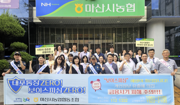 마산시농협(조합장 박상진)은 지난 18일 추석 명절을 앞두고 마산중부경찰서와 신마산지구대와 연계해 대대적인 보이스피싱 예방과 대포통장 근절 가두캠페인을 펼쳤다.