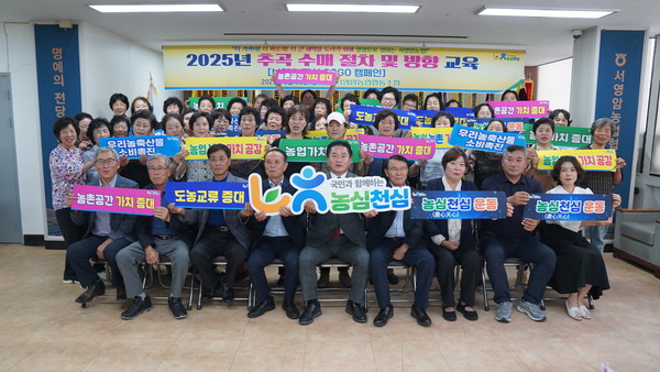 교육 직후 농협 임직원과 내부조직장들은 ‘농심천심(農心天心)’ 운동의 의미를 되새기는 특별한 퍼포먼스를 펼치며 고품질 쌀 생산과 상생의 결의를 다졌다.