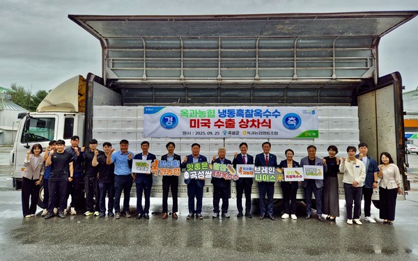전남 곡성 옥과농협(조합장 구정훈)은 지난달 25일 조합 농산물산지유통센터(APC)에서 ‘냉동흑찰옥수수 미국 첫 수출 상차식’을 개최했다.