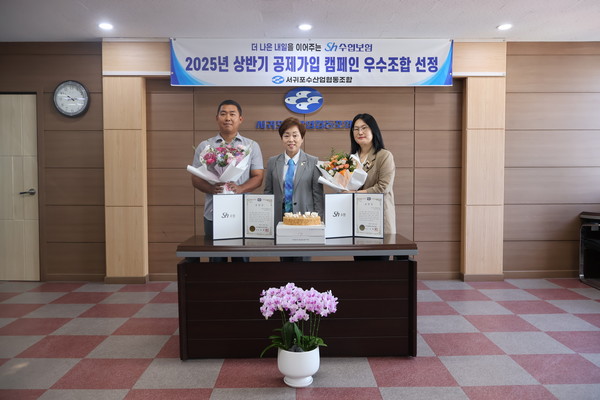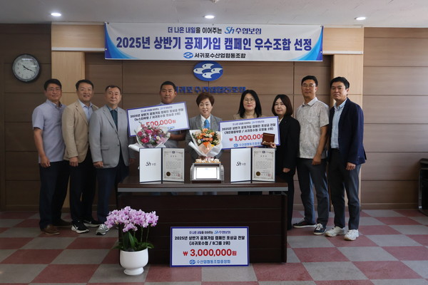 제주 서귀포수협(조합장 김미자)은 지난 23일 본소 3층 회의실에서 ‘2025년 상반기 공제가입 캠페인’ 우수조합 선정 기념 전달식을 진행했다.