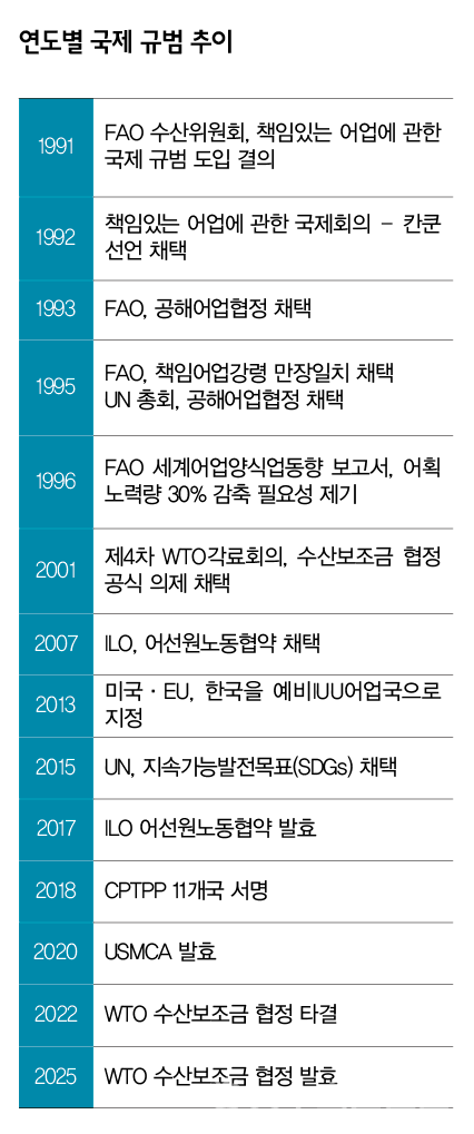 수산자원관리‧어선원인권‧노동권의 보호‧해양생물의 보호 등 전방위 압력