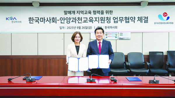 한국마사회와 경기도안양과천교육지원청(이하 안양과천교육청)은 지난 26일 마사회 본관에서 방세권 부회장과 이승희 교육감이 참석한 가운데 ‘말을 매개로 하는 지역교육 활성화를 위한 업무협약’(MOU)을 체결했다.