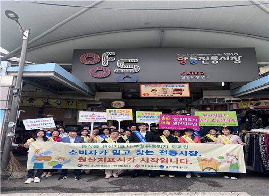 국립농산물품질관리원 전남지원(지원장 이남윤)은 추석 명절을 앞두고 농축산물의 올바른 원산지 표시 정착과 건전한 유통질서 확립을 위해 지난달 30일 광주 시민들이 즐겨 찾는 양동전통시장에서 합동 캠페인과 더불어 전통시장 소비촉진 장보기 행사를 실시했다.