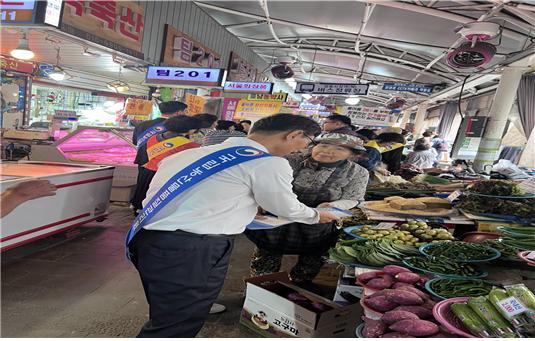특히 추석 명절에 수요가 급증하는 쇠고기, 돼지고기, 나물류 등 주요 제수용품을 중심으로 원산지를 올바르게 표시하도록 홍보했으며 시장을 찾는 시민들에게도 ‘원산지 표시를 확인하는 것이 농축산물을 안심하고 구매할 수 있는 첫걸음’이란 메시지를 전달했다.