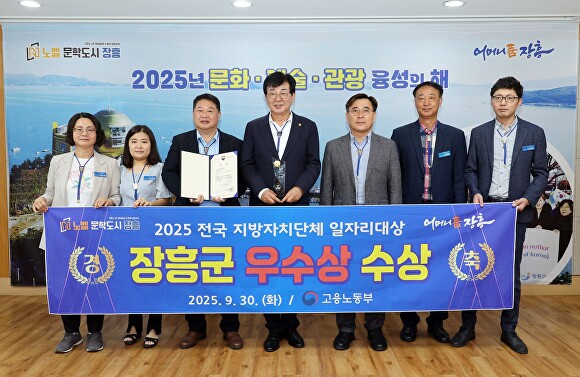 장흥군(군수 김성)이 지난달 30일 충북 청주 오스코에서 열린 고용노동부 주관 ‘2025 전국지방자치단체 일자리대상’에서 공시제 분야 우수상을 수상했다.