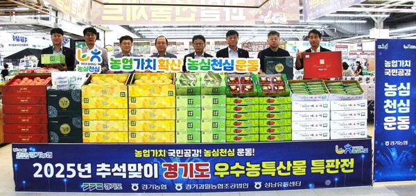 농협경기본부(본부장 엄범식)는 농업·농촌 가치 국민 공감대 형성으로 우리 농축산물 애용과 농촌활력화에 동참하자는 농협의 농심천심 운동의 일환으로 9월 26일 농협성남유통센터에서 ‘2025년 추석맞이 경기도 우수 농·특산물 특판전’을 개최했다.