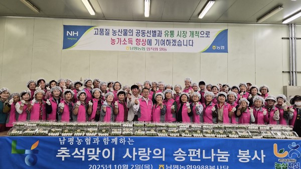 나주 남평농협(조합장 신광섭)은 지난 2일 조합 친환경유통센터에서 부녀회장(단장 안귀자) 60여명과 함께 ‘추석맞이 송편 나눔행사’를 열었다.