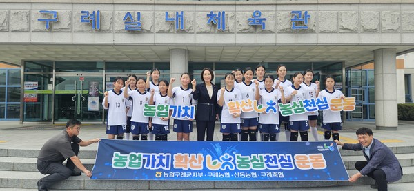 농협구례군지부(지부장 송해경)는 최근 구례실내체육관에서 ‘제19회 교육감배 학교스포츠클럽 대회’ 참여 학생 대상으로 ‘농심천심(農心天心)운동’ 홍보 캠페인을 실시했다.