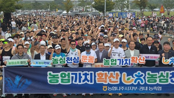 농협 나주시지부(지부장 제해중)는 지난 12일 나주종합스포츠파크에서 열린 제3회 MBN 나주 마라톤대회에 시지부 임직원과 나주시조합운영협의회 조합장 등 20명이 함께 참여했다고 밝혔다.