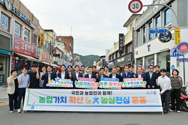 농심천심 운동은 농부의 마음이 하늘의 뜻이라는 의미로 소중한 먹거리를 공급하는 농업의 중요성과 농업인의 삶터이자 도시민의 쉼터인 농촌의 가치에 대한 국민의 공감과 참여를 유도하는 범국민 운동이다.
