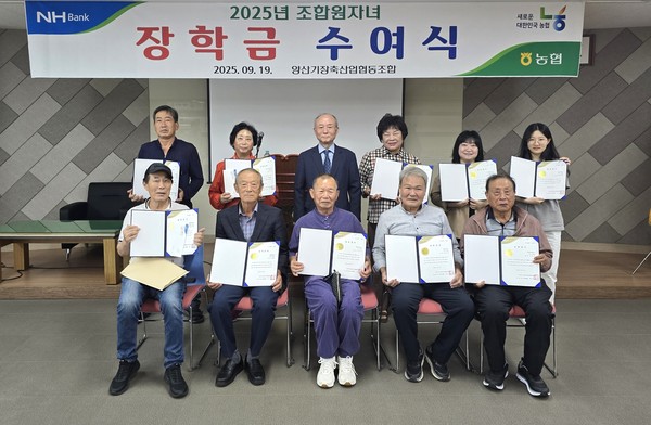 경남 양산기장축협(조합장직무대행 서기영)은 최근 본점 2층 대회의실에서 ‘2025년 양산기장축협 조합원자녀 장학금 수여식을 개최했다.
