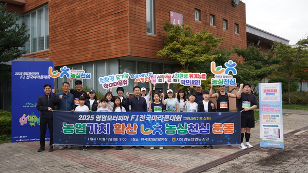 서영암농협(조합장 김원식) 고향사랑팀이 지난 19일 영암군 F1 경기장에서 열린 2025 영암모터피아 F1 전국마라톤대회에서 ‘농심천심(農心天心) 운동’과 ‘고향사랑기부제’ 홍보 캠페인을 성공적으로 전개하고 서영암농협 고향사랑팀이 우수 단체팀으로 선정되는 영예를 안았다.