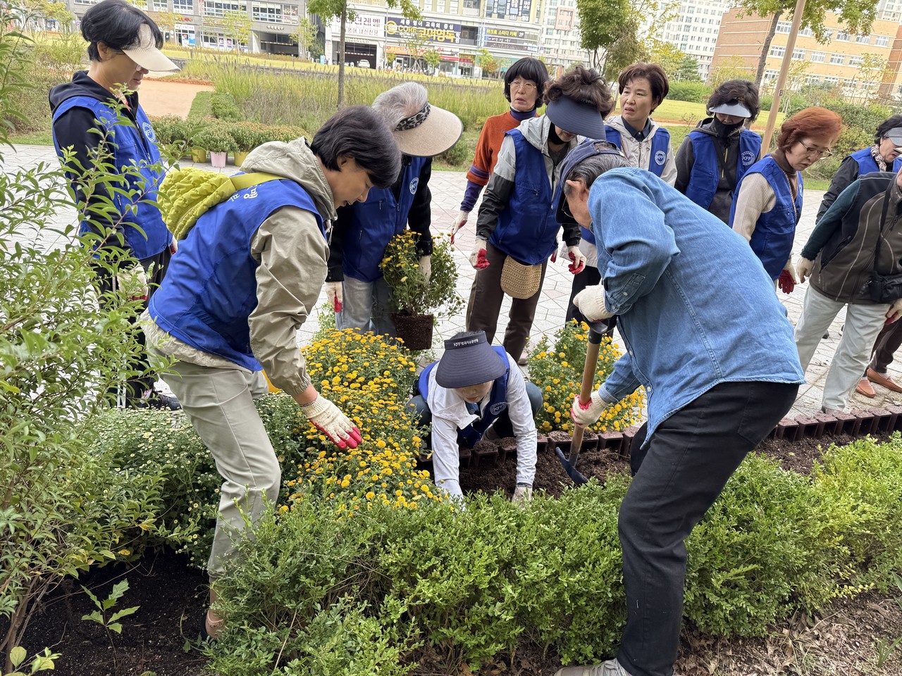 새롬동은 가득뜰근린공원에서 새뜸마을 정원관리단과 함께 국화와 아스타 등 가을꽃을 심고, 잡초 제거와 쓰레기 수거 활동을 펼쳤다.
