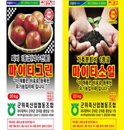 2023년부터 군위축협 가축분퇴비 마이티소일을 군위 관내 농민에 한해 포당 1200원(마이티그린 1800원)에 공급하고 있다. 기존 유기질비료 지원사업에 군비 300원, 군위축협과 농협중앙회에서 1100원을 추가 지원해 마이티소일 최종 대 농민가격 포당 1200원으로 공급하게 된 것이다.