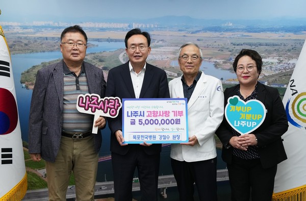 나주시(시장 윤병태)는 지난 22일 강철수 목포한국병원장이 지역사회 발전을 위해 고향사랑기부금 500만 원을 기탁했다고 밝혔다.