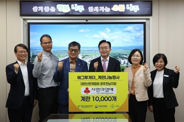 한편 나주시가 기탁받은 계란은 지역아동센터와 노인복지관 등 관내 사회복지시설에 전달될 예정이다.