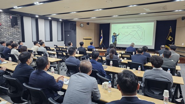 수원축산농협의 '경제전망 교육’이 지난 27일 곡반정동 수원축산농협 본점 청사 대회의실에서 팀장급 직원 50여명이 참석한 가운데 열렸다.