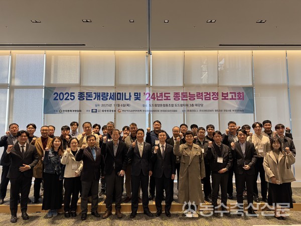 한국종축개량협회(회장 이재윤)는 지난 6일 서울 강동구에 위치한 도드람타워에서 ‘2025 종돈개량세미나 및 2024년도 종돈능력검정 보고회’를 개최하고 국내 종돈산업 발전 방안을 모색했다.