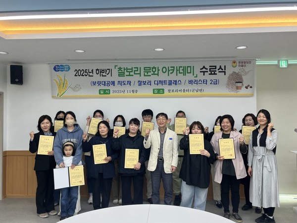 영광군(군수 장세일)은 지난 5일 군남 찰보리어울터에서 ‘찰보리 디저트클래스 과정’ 수료식을 개최하고 총 12회 24시간에 걸친 교육과정을 성실히 이수한 14명의 교육생에게 수료증을 수여했다.