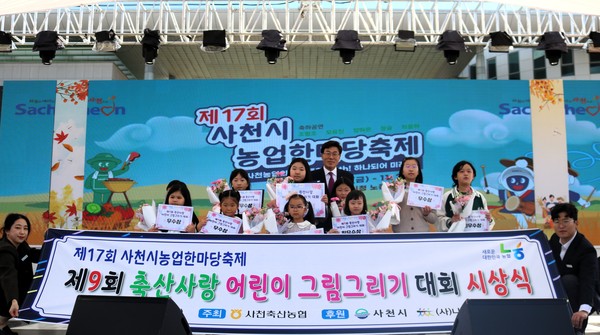 사천축협(조합장 이형주)은 나눔축산운동본부와 함께 지난 1일 사천시청 앞 노을광장 분수대에서 ‘제17회 사천시농업한마당축제’와 함께하는 ‘제9회 축산사랑 어린이 그림그리기 대회’를 성황리에 개최했다.