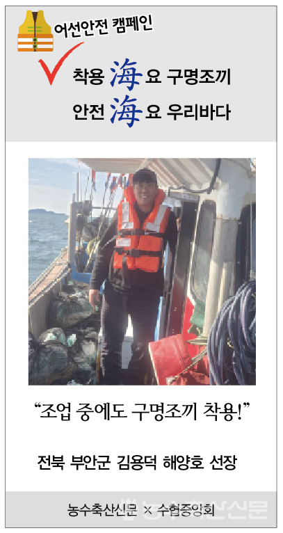 [농수축산신문=농수축산신문] “조업 중에도 구명조끼 착용!” 농수축산신문 webmaster@aflnews.co.kr 다른기사 보기 저작권자 © 농수축산신문 무단전재, 재배포 및 AI학습 이용 금지 당신만 안 본 뉴스 [AFL칼럼] ASF 백신 개발, ‘K-방역’의 새 지평 열까 서울 영등포농협 사회공헌실천재단, '가정의 달 이벤트' 경품 증정식 개최 예산군, ‘힐링·건강·나눔’으로 주민 삶의 질 높인다 영등포농협 사회공헌실천재단, 동작구 '사랑의 온도탑' 제막식 '1호 주자'로 나서 지역사회 온기 확산 물꼬 터 차기 농협 축산경제 대표이사 선거 3파전 영농형태양광, 임차농 보호장치 마련을…정부, 투기 방지법 ‘밑그림’ [Issue+] 2026 국제곡물시장 전망 [AFL칼럼] ASF 백신 개발, ‘K-방역’의 새 지평 열까 댓글삭제 삭제한 댓글은 다시 복구할 수 없습니다. 그래도 삭제하시겠습니까? 비밀번호 닫기 기사 댓글 0 댓글 접기 로그인 후 이용 가능합니다. 댓글 내용입력 비회원 로그인 이름 비밀번호 댓글 내용입력 댓글쓰기 계정을 선택하시면 로그인·계정인증을 통해 댓글을 남기실 수 있습니다. 회원 로그인 비회원 글쓰기 이름 비밀번호 자동등록방지 로그인 옵션 창닫기 주요기사 숭례문 앞에 모인 ‘유령농부’들…유기농업 2배 확대 결의 플랜티팜, 사우디 성지 메디나에 K-스마트팜 구축한다 산림경영지도 우수사례 최우수상에 이이섭 상주시산림조합 지도원 세포배양 인조축산물, 안전성 문제 여전히 화두 [Issue+] 지속가능한 농업은 우리의 사명...ESG 경영 발굴·확산 ‘주목’ [농수축산신문-수협중앙회 공동기획] 착용海요 구명조끼 안전海요 우리바다 ⑦ 제주시 이보라 조일호 선장
