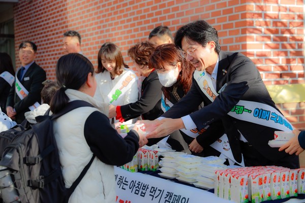 이날 캠페인에선 등교하는 초등학생들을 대상으로 곡성쌀로 만든 가래떡과 음료를 제공하며 가래떡데이의 의미와 아침밥의 중요성을 함께 홍보했다.