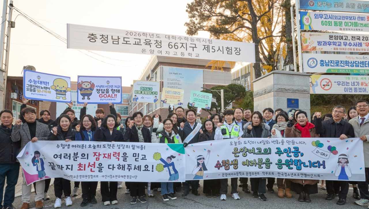 아산시는 시와 의회, 학부모, 시민이 함께 시험장을 찾은 학생들에게 응원을 아끼지 않으며 ‘수험생 힘내라’는 메시지로 아침 시험장 분위기를 따뜻하게 물들였다.