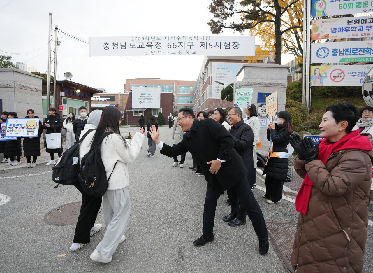 2026학년도 대학수학능력시험이 치러진 13일 아산시 곳곳의 시험장에는 이른 아침부터 수험생을 응원하는 따뜻한 손길이 이어졌다.